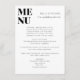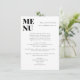 Modern minimalistisk svart vit stilfull bröllopsmeny
