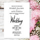 En modern minimalistisk vit med svarttextbröllopsinbjudan.