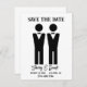 Modern, minimalistisk kungörelse om homosexuella bröllop spara datum har två sorters silhuett med anpassade på vit bakgrund.