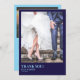 Få glädje av din speciella dag samtidigt som du visar din tacksamhet med det här moderna 2-fototackkortet. Designad med en elegant marin och ljusblå palett kan du med den här mallen anpassa dig med två skattade bröllop-foton. Vare sig det är ett uppriktigt ögonblick eller ett romantiskt skott är det här kortet ett vackert sätt att tacka de vänner och den familj som delade i firande.