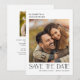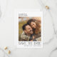 Detta moderna kort för att spara datumet har en minimalistisk design som ger utrymme för två foton. Den stilrena texten visas mot en ren vit bakgrund. Anpassad text på baksidan låter dig lägga till din bröllopsinformation.