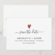Enkel modern trendig scripttypografi och röd scharlakansröd hjärta spara datum-kort att anpassa för din bröllop.