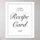 "Vänligen lägg ditt receptkort här" bröllopsskylt. Stilrent modern minimalistisk svart-vit design.