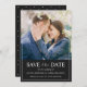 Modern minimalistisk svart svart, vitt foto sparar datumkortet. (1) Om du vill göra ytterligare anpassningar klickar du på länken "anpassa ytterligare" och användor verktyg som är utformat för att ändra mallen. (2) Om du föredrar Avsluta /projektionsyta kan du överväga att välja Papper projektionsyta.
