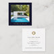 Gör ett bestående intryck med våra moderna minimalistiska Affärskort för foto, med en fantastisk fotobild som är elegant framtagen av en rik mörk marin gräns. Den omvända sidan visar en ren vit bakgrund, kompletterad med en slimmad kontaktinformation för logotyp och anpassade i guld. Korten är professionalism och elegans, perfekt för det riktiga gods agent tittar att presentera sitt egendom och sina tjänster med en modern och högkvalitativ beröring.