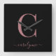 Modern minimalistiskt Ro Guld-monogramskript Namn Fyrkantig Klocka