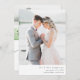 🎉 💍 tacka vänner och familj för att de gått med dig och firat din Big Day med det här moderna fotot-bröllop-tackkortet. Kortet har ett redigerbart meddelande på baksidan.