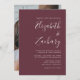 Den här enkla, moderna bröllopsinbjudan innehåller vit text på en burgundisk bakgrund. Lägg till bildens och bildens namn i snyggtens handskriftsgrafi och detaljerna i sans serif-teckensnitt. Byt enkelt ut exempelbilden på baksidan mot ett eget foto.