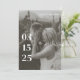 Ett modernt och minimalt svartvitt bröllop-foto sparar datumkortet. Anpassa med ditt eget foto på förlovningen, namn och framtida bröllop-datum på framsidan och ytterligare bröllop-information på baksidan.
