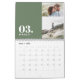 Modern, vit flerfotofamiljskalender med minimal grönt. Ett snyggt djärvt sätt att visa dina familjefoton.