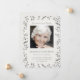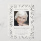 Ett modernt sympatikort med grått blommigt på en benvit bakgrund och ställe för ett foto.