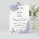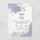Den här utpräglade utformningen av bröllop spara datum-kortet visar botaniskt inslag elegant i svart, och harmoniserar med abstraktens bakgrund i lila, kräm och vitt. Om du lägger till en liten nyhet kommer din anpassningsbar att presenteras på ett utmärkt sätt i två trending typsnitt: ett elegant och sofistikerat Sans Serif-teckensnitt och ett charmerande handskript. Du kan anpassa texten helt och hållet så att den återspeglar dina unika stil och preferenser.