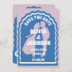 Vårt minimala, djärva kort för spara-till-datum-stil-bröllop är perfekt för det trendig par som kärlek står ut och skapar ett djärvt påstående. Vår design har en djärv blå lila färg-kombination. En enkel abstrakt vågigt en bågform skapar ett fet utseende med bröllop-datumet som visas fräckt i vitt stort teckensnitt. Den omvända sidan har en fullt-fotolayout med ett fet monogram och ett par bröllop webbplats adress