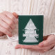 Modern geometrisk grönt och vit Julgran-fet minimidesign för grafiska helgdag