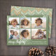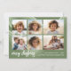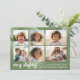 FRONT DESIGN: Ett kollage med sex foton i ett enkelt rutnät för att markera många bilder från det gångna året. Fotorutnätet innehåller 4 kvadratiska bilder och 2 vågrät foton. Ett modernt sätt att söka efter ett helgdag-fotokort med röda färgader och "god jul" i ett stort trendig-skriptteckensnitt. Bakgrunden omfattar nyanser av underordnad grönt med kurvlinjekonst. Ett område för hälsning och familj namnteckning under bild-kollagen. BACK DESIGN: Ett retrogeometriskt örrben mönster i nyans av oliv grönt och champagne. För avancerade användare kan du gå till designområdet och ändra färg.