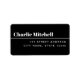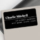 Svarta eller anpassningsbar färg-returetiketter med ditt namn justerat efter högerna och returadressen justerad mot den lämnat avgränsad med en tunn linje. Typsnitt och färg kan anpassas med verktyg.