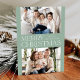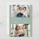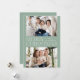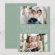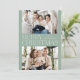 Modern julfotokort med "God jul" som visas i mitten av designen i trendiget med vit text med en mint grönt bakgrund. Anpassa det enkla julkortet med dina foton från familjen namn och två vågräna. Kortet återgår till visningen med en mynningsbakgrund med subtila vita punkter (snö).