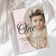 Modern miss Onederful Rosa Bow Foto 1:a födelsedag Inbjudningar