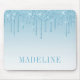 Modern Elegant Trendig och Fashionabel Ljusblå Glitter Musmatta personlig med ditt Namn. Droppande Glitter med gnistror.