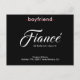 Meddela din förlovning med denna enkla svart-vita design. Han satte äntligen en ring på det. Nu är han inte längre din pojkvän utan din fästman. Anpassa med vår lättanvända mall. Lägg till era namn, bröllopsdatum och plats. På baksidan kan du skriva er returadress och ett kort personligt meddelande.