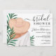 Tittar du en möhippa för speciell roligt? Skaffa den här unika handmålningen modern och coola handmålad mode illustration av en tropisk grönt vattenfärg i handflatan träd löv med en kvinna som bär en halmvattenfärgshatt och rosa båge, med ett elegant-manusyrgrafi.