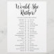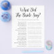 Den här eleganten, den moderna HBT-högkvarteret, vad sa Bride? Och skulle hon hellre? Möhippans spelsida är både trendig och chic. Det är en enkel, minimal utformning som är perfekt för alla stil bröllop. Med två spel för att spela kommer det att öka din eller din älskade möhippas upphetsning och roligt. Gästerna kommer att tycka om att försöka besvara alla frågor om de brider som ska finnas. Det finns nog många skratt när svaren ges. Om du vill anpassa väljer du "Anpassa den här mallen" och skriver där så är markerat i namn och initialer på briderna. Det är lätt toppen!