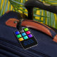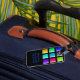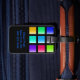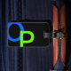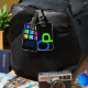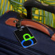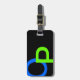 Två stora brev i blått och grönt för din initialer på en svart bakgrund.