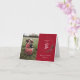 Ett Modern Monogram-åringskort för andningsfoto med ett foto från lodrät porträtt med guld-vajerandning och asymmetrisk helgdag-svag med gräs grenar, cypress och bär på en festlig röd bakgrund.