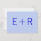 Den här blå Modern Monogram-bröllopsinbjudan till OSA är helt och hållet anpassade. Bron- och triommonogrammet visas tydligt på baksidan.