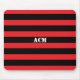 This mouse pad features a minimalistic design with black stripes on red with monogram in white font. The colors and font are customizable.