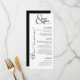 A simple, modern, black and white wedding menu card that emphasizes the thoughtful choices of your wedding reception meal. Your monogram with an elegant ampersand and wedding date tops the menu adding another beautiful element to your wedding decor tablescape. "the menu" is written in handwritten style.
