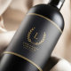 Den här eleganten svart och guld vin flaska präglas av ett modernt monogram omgivet av en lagerkrans som visar parets namn och familj namn. Utformningen omfattar även datumet bröllop, som är inramat med en lyxig grekisk mönster nyckel överst och grund. Perfekt för en snyggt bröllop firande lägger denna personlig till en uppskalbar, tidlös beröring för alla vin-gåvor eller keepsaké. Den sofistikerade typografin och guld-accenterna gör det till ett idealiskt val för det moderna paret att tittar fira sin union med elegans och klass.