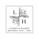 Frimärke är designat för den snyggt som det traditionella paret tittar för en speciell beröring till sin post med anknytning till bröllop. Ett perfekt som tillägg till ditt sparande av datum och bröllopsinbjudan. Den här designen har dina första namn-monogram i en botanisk blommigt ram, med rustik, handdragen grenar, löv och blommor. Vid grund står ditt namn och bröllop-datum.
