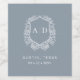 Modern Monogram Bröllop Dusty Blue-Vapensköld Vinflaska Etikett