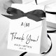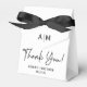 Den moderna monogramförmånslådan Bröllop Tack med briden och groomerna initialer, Tack i ett trendig-typsnitt och lycklig-parets namn och bröllop-datum alla i svart bundna med en svart elegant-matarbun skulle vara perfekt för favörer vid din bröllopsmottagning. Det skulle vara underbart för ett godis station, för ett tack till bord eller för varje ställe med en tjänst. Se till att du beställer tillräckligt för alla dina gäster.