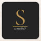 Modern Monogram Classic Black Gold Script Name Square Paper Coaster.