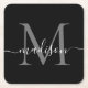 Modern Monogram Classic Black Grått Namn Underlägg Papper Kvadrat