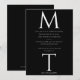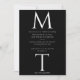 Vi presenterar vår svartmoderna monogrambröllopsinbjudan - ett mästerverk i contemporary som på ett snyggt sätt blandar elegans med en personlig. Denna inbjudan är en hyllning till enkelhetens kraft, som har ett slående stort serif-monogram som går i bräschen och anger tonen för en händelse som utesluter både sofistikering och individualitet. Det moderna initialerna, som är mycket detaljerat uppgjort, drar öga med sitt djärva linjer och tidlösa mod. Den eleganta designen fångar kärnan i din union, visar initialer och återspeglar din gemensamma resa och den enighet du firar. Det stora monogrammet fungerar som ett visuellt ankare och ge omedelbart gästerna en glimt in i stil och elegans som de kan förvänta sig vid bröllop. Monogrammet får en större betydelse mot bakgrund av en förfinad svart rik. Dess minimalistiska elegans gör det möjligt för den att visa sig i all sin fantasi och frammana en känsla av underskattad lyx som liknar par som söker en bröllopsinbjudan som är både contemporary och klassisk. Vår Modern Monogram bröllopsinbjudan är inte bara inbjudan dina nära till firande. Det inbjudningskort dem att bevittna sammanslagningen av två liv, två historier och två familjer som samlas i en harmonisk union. Dess rena linjer, tankfulla utformning och anpassning garanterar att det inte bara är en inbjudan - det är en återspegling av din kärlek-historia. Oavsett om du är värd för en intim församling eller en stor firande, så anpassar sig Modern Monogram bröllopsinbjudan utan problem till din vision. Det är ett bevis på din stil, ditt engagemang och din önskan att din speciella dag med dem som står dig närmast. Öka dina förberedelser inför bröllop med en inbjudan som kapslar in kärnan i det moderna romantik och sätter in scenen för en dag som du kommer att hålla för evigt.
