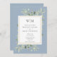 Modern Monogram Dusty Blue Greenery Bröllop Inbjudningar