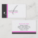 En vitbakgrund med en stor kolfärgadrand och en mindre shock rosafärgadrand på vänstersidan räcker sidan av kortet. I centrera av kortet är ett stort märka med sina initialer i mjuka grått. Din namn och titel är på bekläda, och all annan information är på baksidaen.