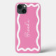 Modern monogram iphone case med elegant, rosa från stil gräns. Anpassat namn för handskrivet stil-skript för snyggt. Välj från knappt där eller tuff stil caseser och skydda din iPhone i stil.