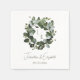 Den här napkin-designen har en enkel eucalyptus-krans som omger bruden och groomens monogram i ett elegant- och typografi. Anpassa med namn, monogram och bröllop för en napkin helt själv.