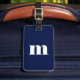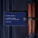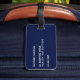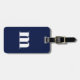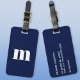 Modern nedre typografi av fodral, minimalistisk första utformning som kan ändras för att anpassas, tillsammans med detaljerna på motsatt sida. Vit på en marin blå bakgrund.