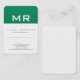 Modern monogram Grönt Vitt rent Affärskort Visitkort