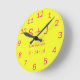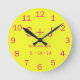 Den här gult och rosa Modern Monogram-klockan visar bridens och brudgummens initialer, namn och datum för deras bröllop.