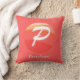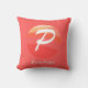 Modern Monogram Initial Brev orange gult coral Dekorativ kudde. Brev P. Helgdag gåva.