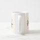 This modern coffee mug features a monogram and name in stylish script calligraphy on a neutral beige background. It is easily customizable.