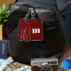 Modern nedre typografi av fodral, minimalistisk första utformning som kan ändras för att anpassas, tillsammans med detaljerna på motsatt sida. Vit på en burgundröd bakgrund.