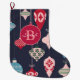 Modern Monogram-julprydnad Mörk blått Stor Julstrumpa