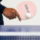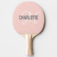 Modern pingpongpaddel med en giftig, rosa, ett skript monogram och ett typografiskt namn. Anpassa med ditt namn och monogram.